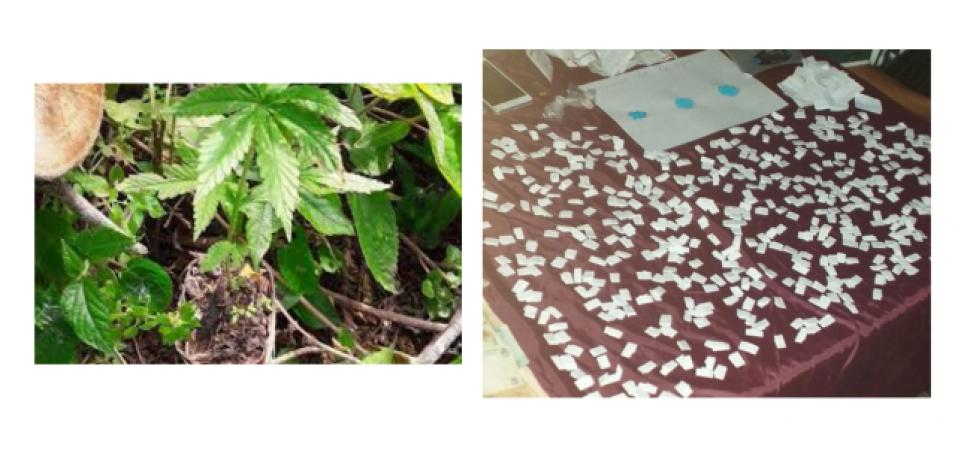 La Dirección General de Drogas Peligrosas secuestraron 193 ravioles de cocaína, 57 bagullos y 41 plantines de marihuana