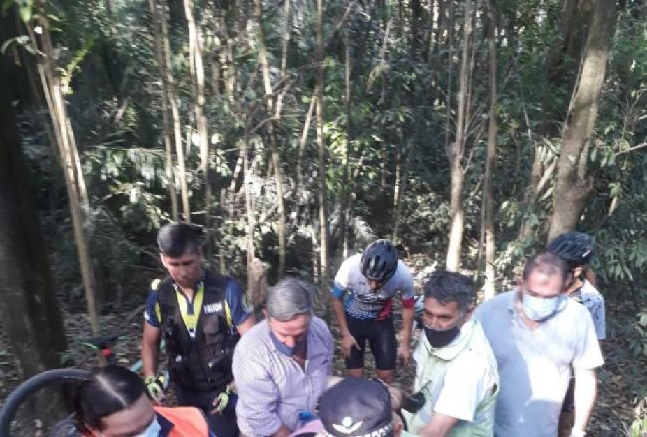 Una ciclista mayor de edad fue rescatada en la tarde de este miércoles por efectivos de la División Patrulla Motorizada Yerba Buena luego de que sufriera un accidente mientras circulaba por la conocida “Senda El Gomero”.
