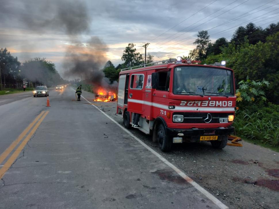 Debido al accidente , vecinos del lugar quemaron el automovil VWGol que era conducido por Eduardo Agüero, empleado policial.