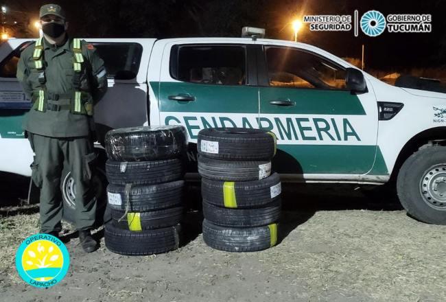 En el marco del Operativo Lapacho, que lleva adelante el Ministerio de Seguridad a través de la Policía de la provincia en conjunto con fuerzas federales basada en controles en las zonas fronterizas de Tucumán, se procedió al secuestro de diez neumáticos.