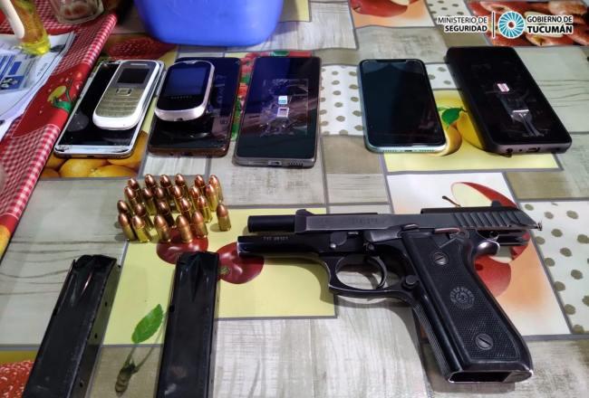 Las pesquisas y averiguaciones realizadas por los investigadores permitieron solicitar medidas judiciales que se concretaron en seis domicilios a partir de las 07:00 de la mañana de ayer. En total se secuestraron 26 teléfonos celulares, un Handy, armas de diverso calibre y una importante cantidad de municiones, además de una suma cercana a los 200.000 pesos.