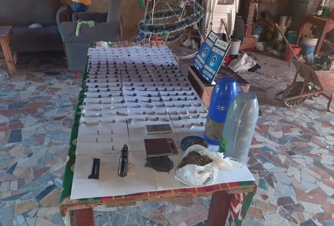 Además, una persona quedó aprehendida por la causa de robo y narcomenudeo. En otra vivienda se incautaron armas de fuego, cartuchos, 70 “ravioles” de cocaína, 143 “bagullos” de marihuana, e igual sustancia fraccionada para su venta. También elementos que hacen presumir que eran utilizados para la venta ilegal de drogas. En total, hubo tres aprehendidos por la Ley de Narcomenudeo, y uno de ellos también por el robo”, detalló el jefe de la Unidad Regional Este, Comisario General Fabio Ferreyra, quien supervisó las medidas judiciales que fueron dirigidas por el jefe de la Comisaría Lastenia, Comisario Principal Armando Espeche. Ferreya aseguró que seguirán trabajando para esclarecer por completo esta causa.