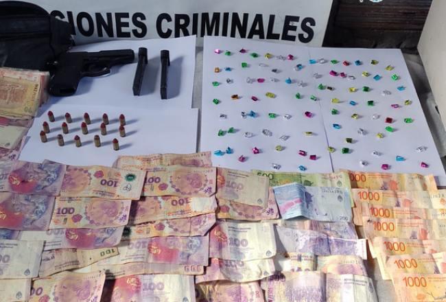 En un inmueble de Villa Muñecas los investigadores hallaron el arma de fuego que emplearon los sospechosos, pero también encontraron una importante cantidad de drogas listas para la venta.