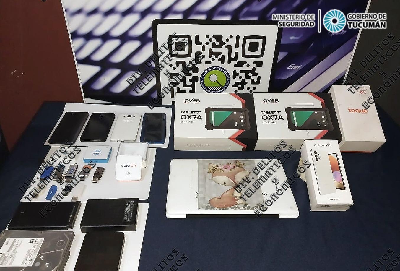 Tras una ardua investigación, durante la tarde del jueves los efectivos de la División Delitos Telemáticos realizaron los allanamientos en un domicilio ubicado en avenida Juan B. Justo al 3100, El Colmenar, y otro en calle Salta entre Santa Fe y Córdoba, Lastenia. En las viviendas hallaron cinco celulares, cuatro discos rígidos, cuatro posnet, nueve pendrives, dos tablets y un televisor.