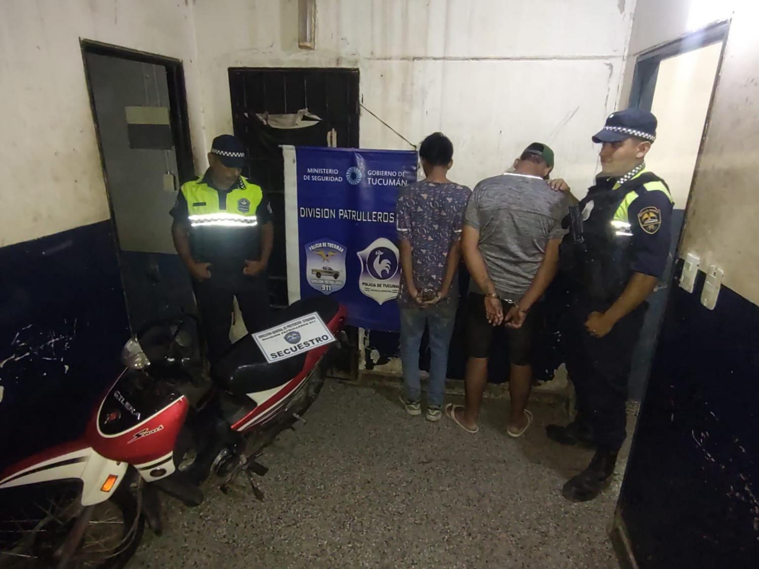 Cerca de las 23:00 horas, aproximadamente, observan en el lugar de la aprehensión a dicho rodado a bordo de dos masculinos, por lo que los efectivos al notar que tenía las mismas características que la moto descripta por el 911, interceptan a estos sujetos y al solicitarle la documentación de la misma, estos no tenían ningún papel como también se pusieron nerviosos al momento del control, comunicándose el Sargento 1° Gerez con el 911 a los fines de que le brinde el dominio del rodado que había sido robado, coincidiendo con el que tenían en el lugar, motivo por el cual procedieron a la aprehensión de estos sujetos y el traslado de la motocicleta a la Comisaria Nº8 URC, el cual manifestó que dos sujetos que se manejaban a pie y mediante el uso de arma de fuego le robaron su moto cuando circulaba por calle Olleros e ingeniero Farías de esta ciudad, para luego estos darse a la fuga, perdiéndolos de vista.