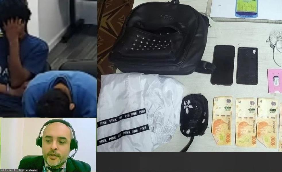 El martes 18 de abril, a las 21:40 horas, previo acuerdo de roles que cada uno realizaría, los acusados abordaron a una pareja que se encontraba en avenida Papa Francisco y Benjamín Aráoz, en inmediaciones del parque 9 de julio cerca de la fuente. En esas circunstancias, los tomaron del cuello, desde atrás, mientras uno de ellos los apuntaba con un arma de fuego para que le hagan entrega de sus pertenencias (a la mujer le sustrajeron una mochila que en su interior contenía un celular, $10.000 mil, campera y DNI; en tanto, a su novio le quitaron su teléfono y su billetera con una tarjeta de débito en su interior). Posteriormente, los acusados huyeron con dirección sur con los elementos mencionados.