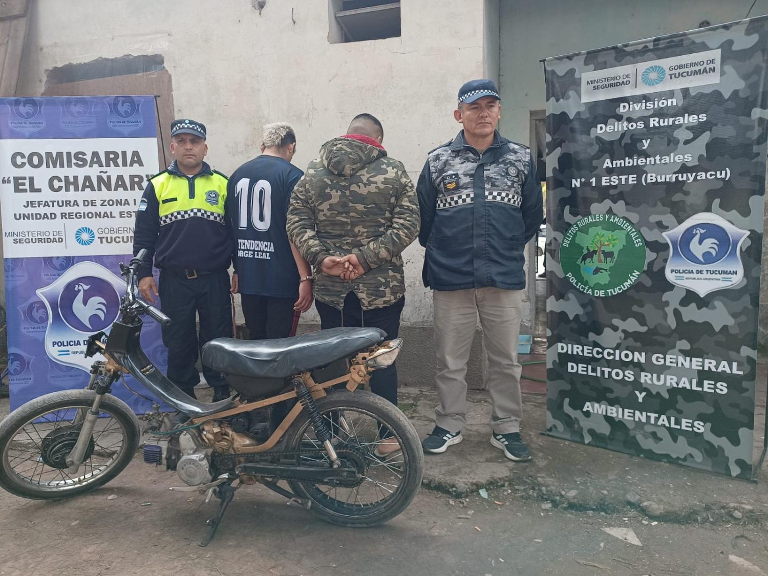 En la ruta 304-Km 20-El Chañar-Burruyacú, la Unidad de Delitos Complejos detuvo una moto de marca Motomel que era trasladada por dos jóvenes de 18 y 22 años, el menor de los chicos manifestó ser el dueño del vehículo pero no contaba más que con el número de motor.