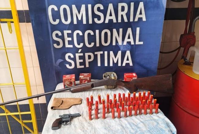 Los efectivos de la Comisaría Séptima secuestraron ayer martes una escopeta, un revólver calibre 22 y 49 cartuchos calibre 32 en el domicilio de uno de los sospechosos