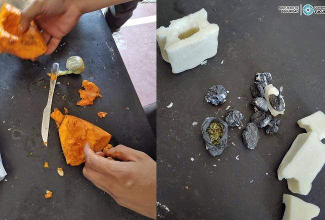 Una segunda situación ocurrió pasado el mediodía, esta vez dentro de un zapallo, se hallaba oculto un bagullo de marihuana. En esta ocasión, la causante, una mujer de 45 años, adujo que solo le hacía el favor a los familiares del detenido de acercarle los alimentos y que desconocía la maniobra.