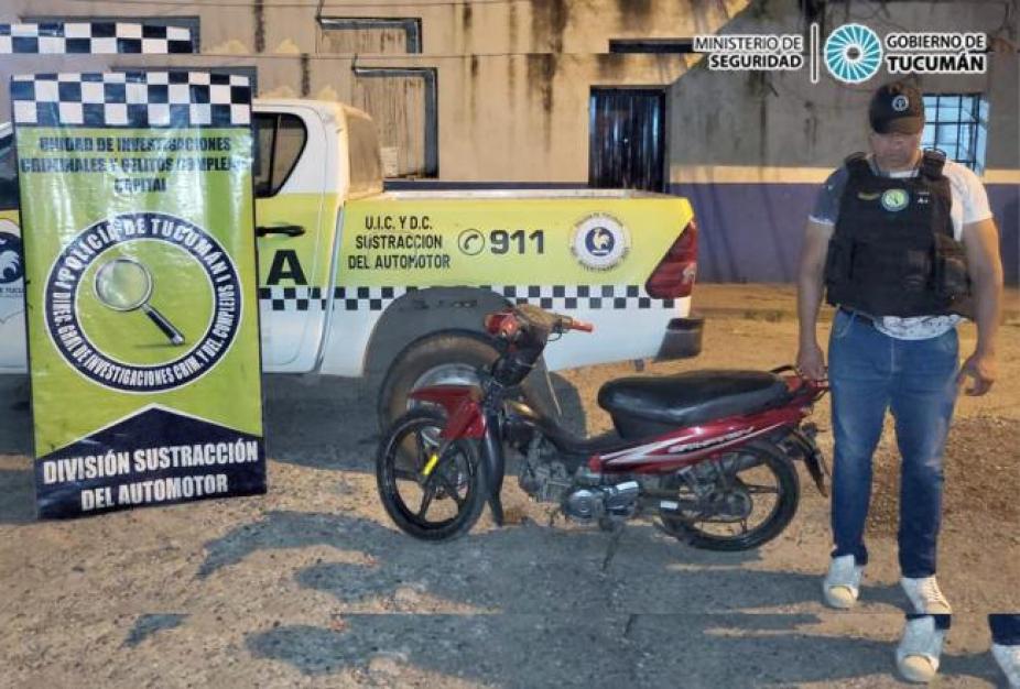 El martes un equipo de la División Sustracción de Automotores, en sus recorridos preventivos por calle 12 de octubre al 300 de la localidad de Lastenia (Banda del Rio Salí), secuestró una moto que tenía un pedido de secuestro por robo en el año 2015.