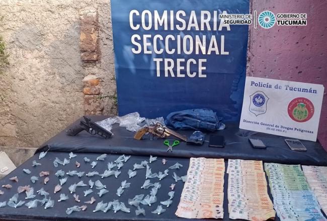 En un allanamiento realizado este martes en una vivienda del Barrio 11 de Marzo, los efectivos de la Comisaría 13 secuestraron armas de fuego, un centenar de envoltorios de cocaína y dinero en efectivo.