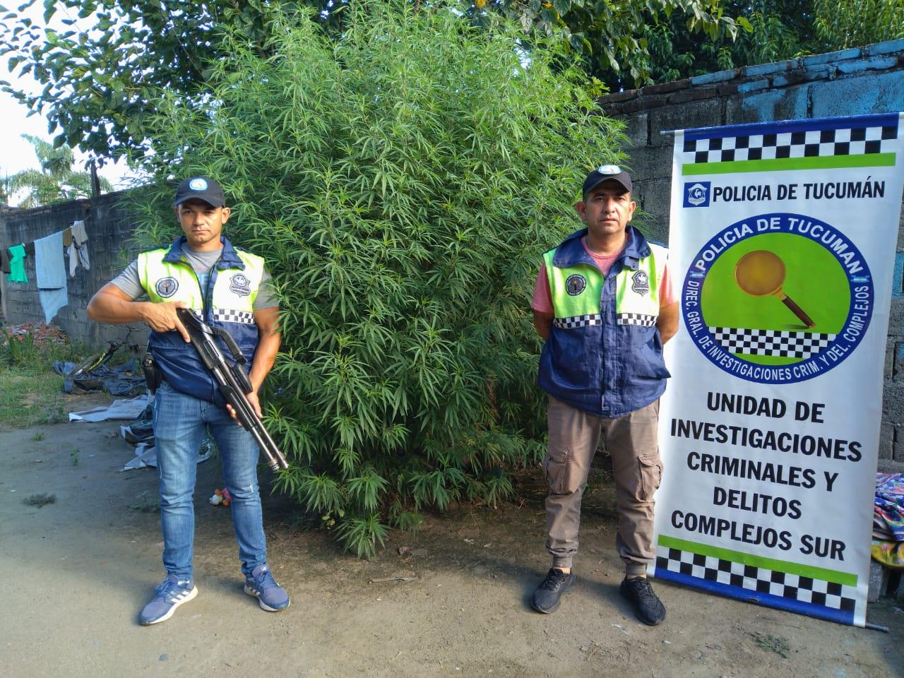 En el domicilio, los investigadores también hallaron tres plantas de marihuana de hasta dos metros y medio de altura, que fueron secuestradas por disposición de las autoridades de la Unidad Fiscal contra la Narcocriminalidad (UFINAR) por infracción a Ley N° 23.737 de Estupefacientes.