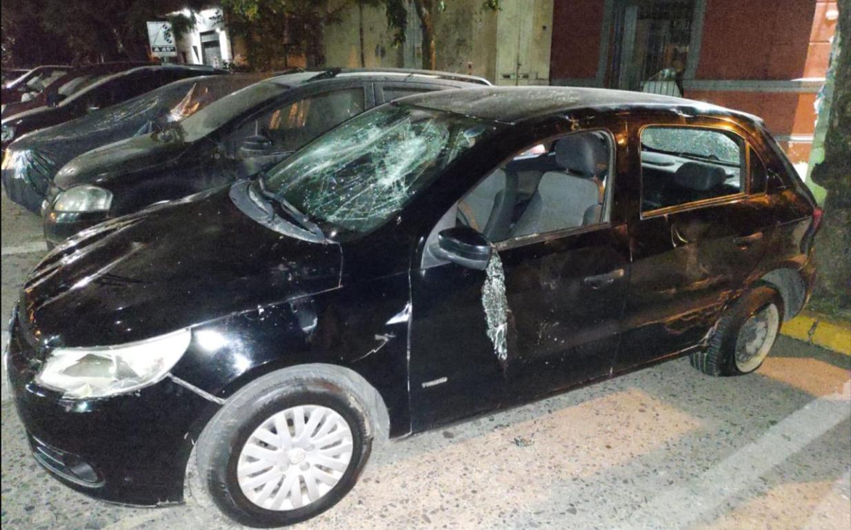 En esas circunstancias, el sujeto de 25 años arrojó piedras que hirieron a un familiar en la clavícula y en distintas partes del cuerpo. Al divisar el daño en el rodado (de color rojo) las víctimas decidieron escapar dejando estacionado -ante la urgencia- el otro móvil en el que habían arribado (de color negro).
