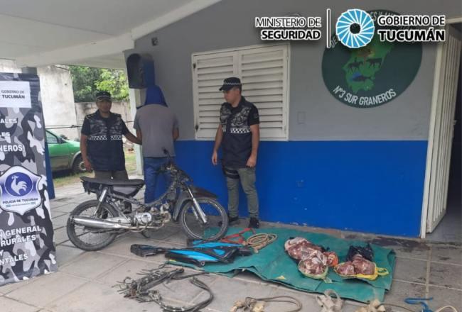 Durante la mañana de ayer lunes, un equipo de la División Delitos Rurales y Ambientales Graneros Sur secuestró carne vacuna, aves en cautiverio, elementos de caballería y una motocicleta sin dominio colocado, luego de una investigación por una causa de robo de ganado