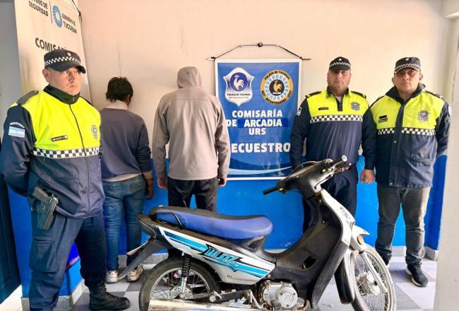 Una mujer alertó a la policía, quien les brindó datos certeros para que los uniformados los aprehendieron y secuestraron la moto en que se desplazaban