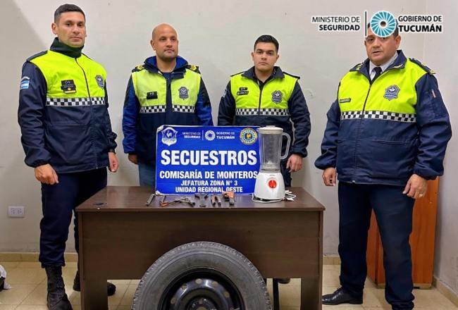 Tras una investigación, efectivos de la Comisaría Monteros recuperaron una licuadora, una rueda de auto, una cubierta y diversas herramientas que estaban en una casa y habían sido robadas días antes en diferentes robos.