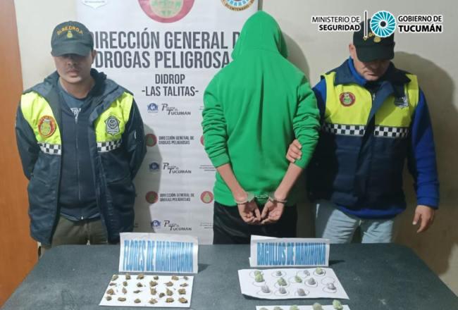 Este martes, uniformados dependientes de la Dirección Drogas Peligrosas (DIDROP) Las Talitas intervinieron en un hecho infractorio a las Leyes 23737 de Estupefacientes y 9188 de Narcomenudeo.