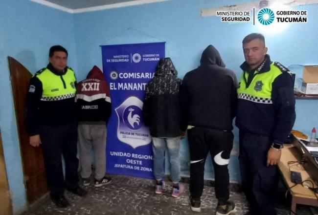 Efectivos de la Comisaría de El Manantial realizaron recorridos de prevención de delitos en horas de la noche cuando apresaron a 3 maleantes, en una esquina de esa localidad.