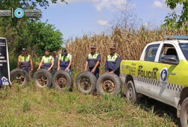 Agentes de la Unidad de Investigaciones Criminales y Delitos Complejos Oeste recuperaron en la Localidad de Capitán Cáceres, 5 ruedas que habían sido robadas de una propiedad ubicada en El Cercado.