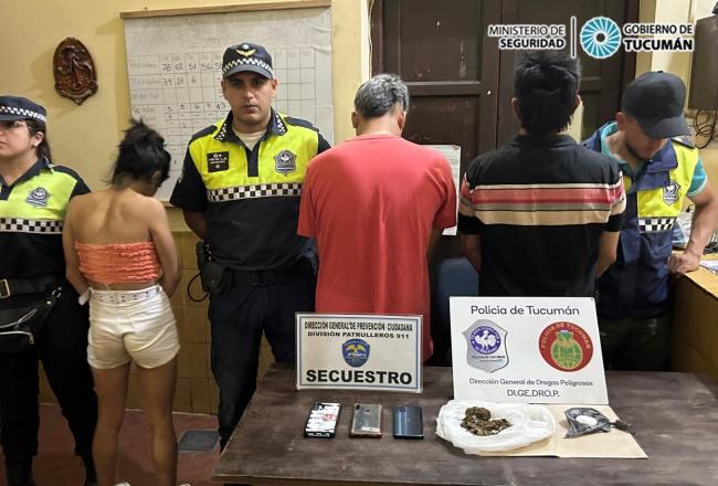El procedimiento fue comunicado a la Unidad Fiscal de Narcomenudeo que dispuso la aprehensión de los mayores de edad, dos hombres y una mujer, en tanto la menor fue entregada a su progenitor. También se procedió al secuestro del vehículo en el que circulaban y los celulares de los causantes.