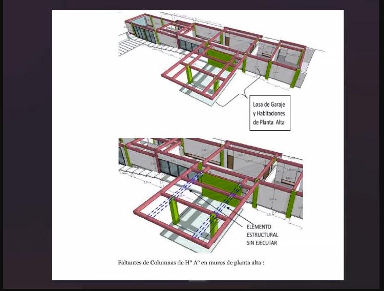 En cuanto a las evidencias, Bilbao se refirió al informe técnico de un arquitecto quien detalló que se observan serias fallas estructurales donde no cumplieron con los mínimos parámetros (falta de vigas principales para la columna) y la no colocación de materiales necesarios.