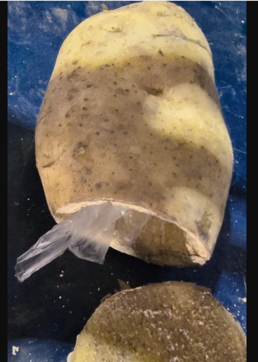 Luego de un conflicto con los internos, los efectivos realizaron una requisa en el interior de una celda y hallaron una bolsa con papas que estaban cortadas a la mitad y cavadas en el centro. Allí estaban ocultos diez envoltorios de papel glasé.