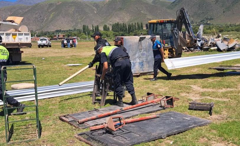 En medio de un fuerte operativo, destruyeron por completo un local que había funcionado como centro nocturno en plena Reserva Natural La Angostura. La medida se concretó con orden judicial.