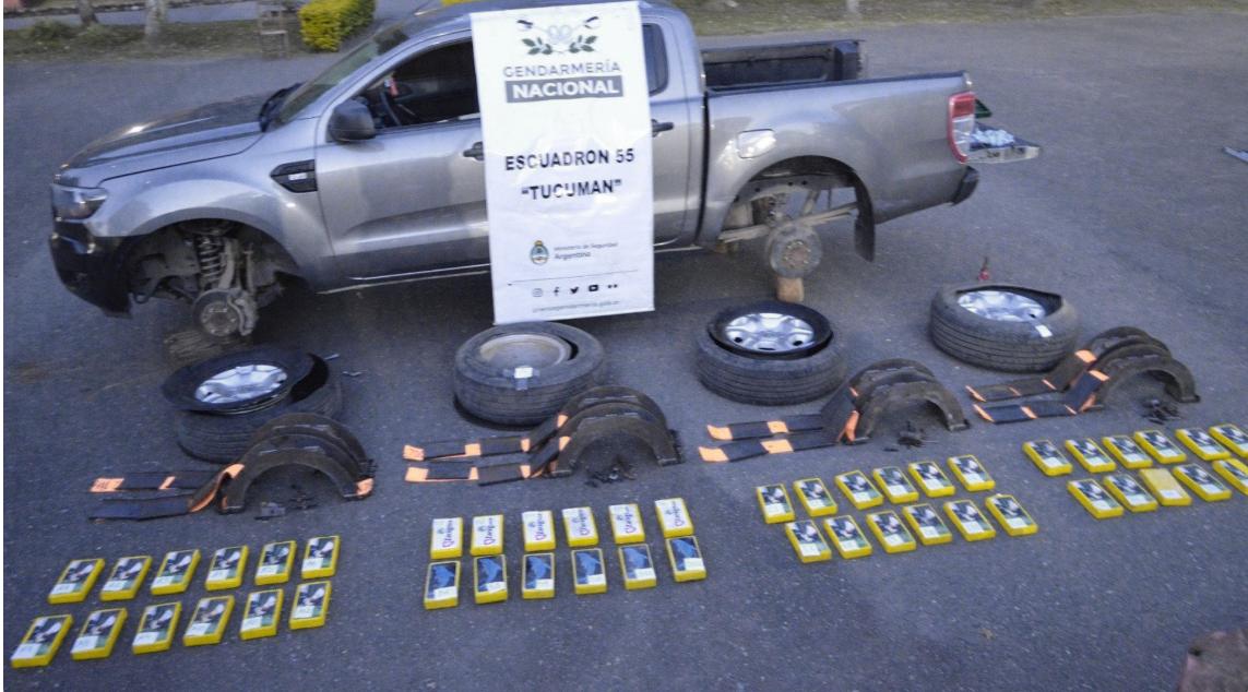 Gendarmería Nacional Argentina (GNA), dependiente del Ministerio de Seguridad Nacional detuvo a una ciudadana argentina que transportaba casi 50 kilos de cocaína ocultos en los neumáticos de una camioneta Ford Ranger.