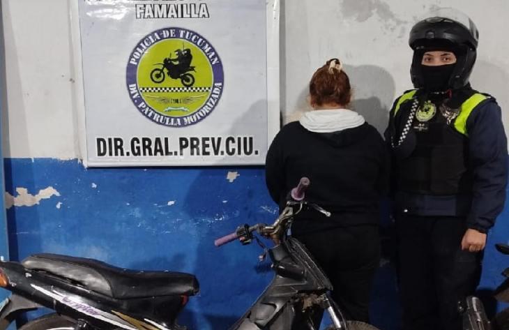 En un control vehicular, los efectivos de la División Patrulla Motorizada de Famaillá detectaron una motocicleta que tenía pedido de secuestro por una causa de robo. Su conductora quedó demorada