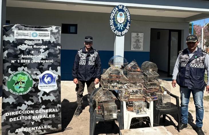 Mientras hacían recorridos investigativos por la localidad de Las Talitas, los efectivos de la División de Delitos Rurales y Ambientales N°1 Burruyacú rescataron 25 aves silvestres que se encontraban en cautiverio en una vivienda, donde además secuestraron siete tramperas y 20 jaulas.