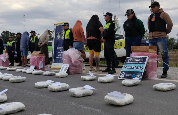Los efectivos intervinientes valuaron lo secuestrado en unos 70 millones de pesos. La sustancia estaba oculta en un camión que había sido denunciado como robado. El vehículo fue interceptado en una estación de servicio en la Ruta Nacional N° 9. En este procedimiento fueron detenidos cuatro hombres y una mujer. Un equipo de la Dirección Drogas Peligrosas Norte intervino para incautar la sustancia luego de realizar la prueba de campo correspondiente para dar certeza de que se trataba de la sustancia prohibida.