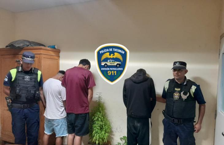 Los efectivos de la División Patrulleros 911 aprehendieron a tres jóvenes y secuestraron 13 plantines de marihuana en un procedimiento realizado en la noche del domingo en la Capital