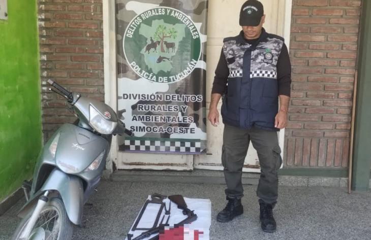La intervención tuvo lugar en una propiedad de El Polear, donde el personal policial halló una motocicleta Honda 125 cc color gris, una escopeta de dos caños, un pistolón calibre 16, herramientas varias y un pantalón con manchas pardo-rojizas que serán analizadas.