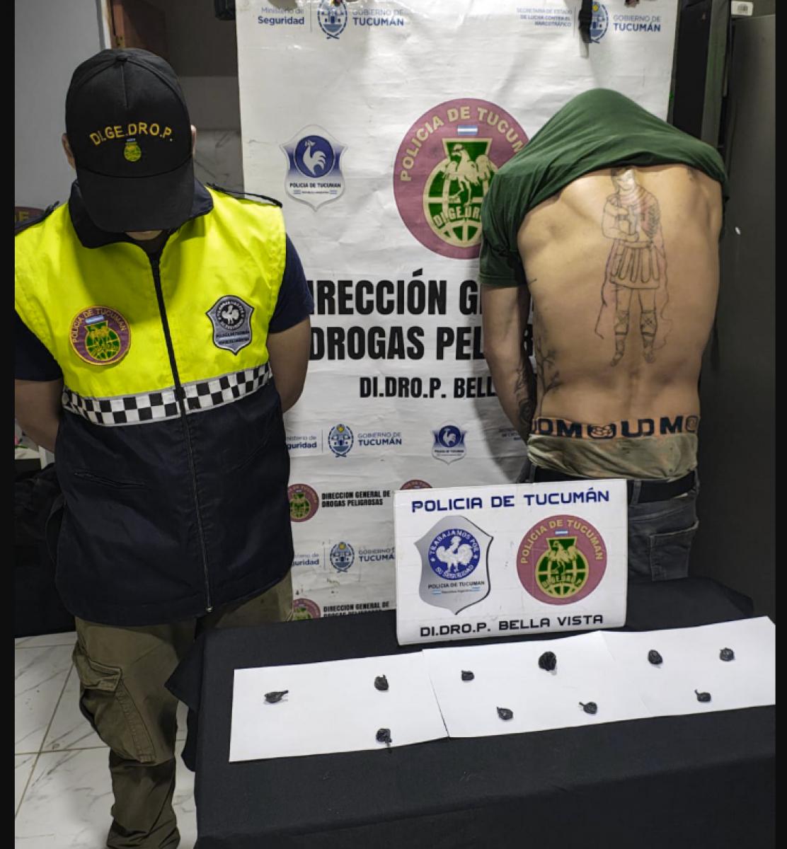 Un equipo de la Dirección Drogas Peligrosas Bella Vista, que recorría el barrio Santa Rita de esa ciudad, al llegar a la intersección de calle San Martín y pasaje sin nombre, observaron al desconocido quien al advertir la presencia policial se alzó a correr para perderlos de vista; sin embargo, le dieron alcance y procedieron a la correspondiente requisa.