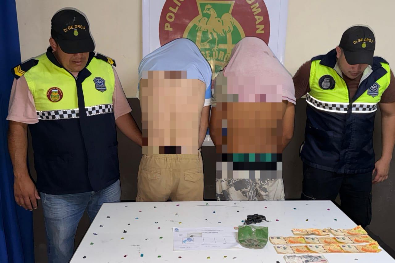 Efectivos de la División Drogas Peligrosas Este interceptaron a dos jóvenes durante un patrullaje preventivo realizado en la localidad de Lastenia, donde lograron el secuestro de estupefacientes y dinero en efectivo