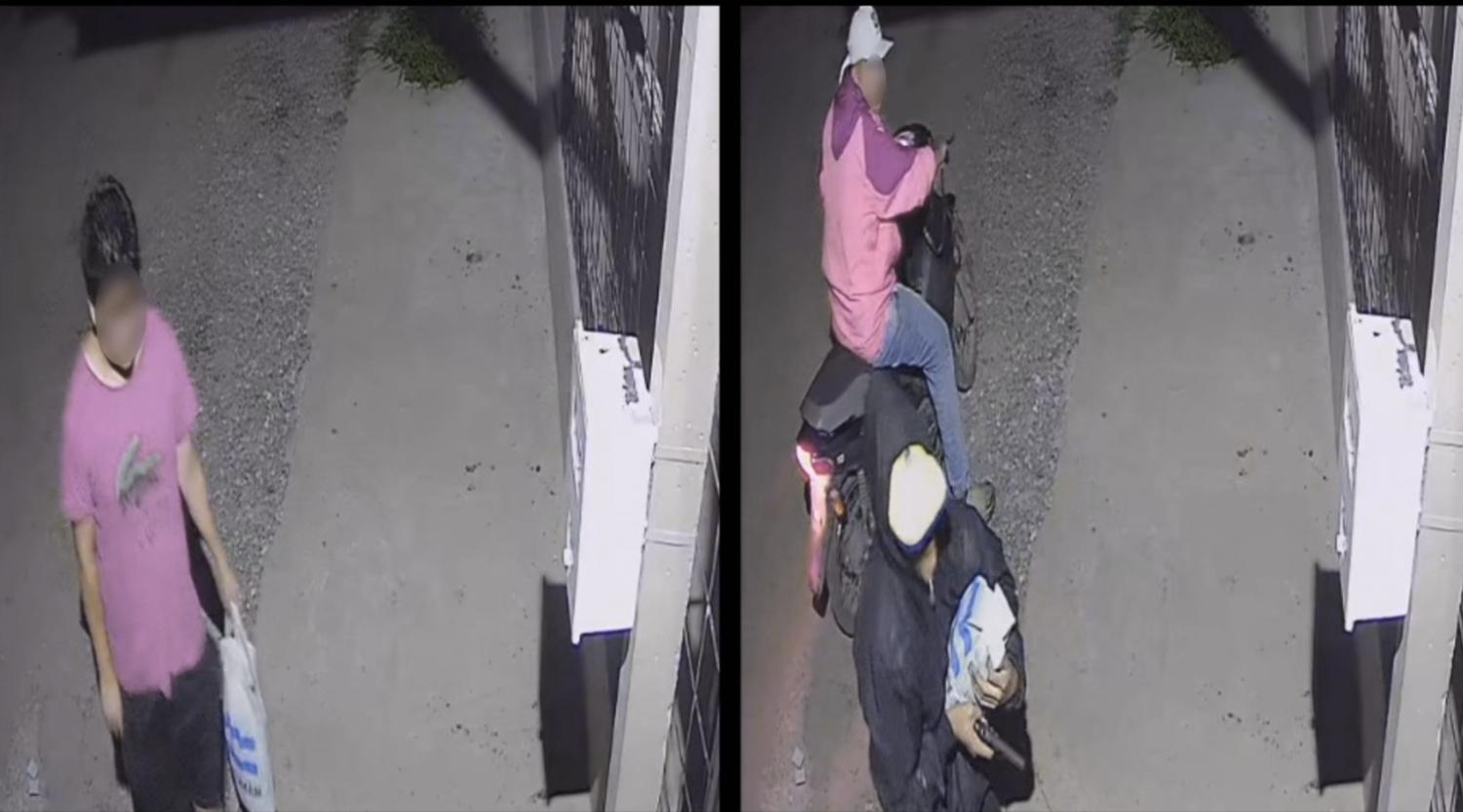 El joven dejó caer una bolsa que llevaba, siendo tomada está por el delincuente, mientras su cómplice lo esperaba con la moto encendida.
