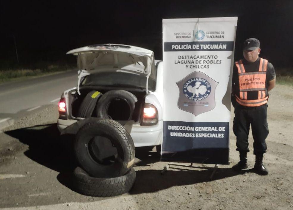 Al inspeccionar a un automovilista que provenía de Salta en el marco de los controles vehiculares del Operativo Lapacho, los efectivos del Destacamento Fronterizo Laguna de Robles detectaron que trasladaba 16 cubiertas y artículos importados sin aval aduanero con destino a la provincia.