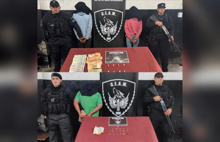 En ambas situaciones, los tres causantes fueron aprehendidos y trasladados a la base policial, donde se dio aviso a la Unidad Fiscal de Narcomenudeo, que dispuso la intervención de la Dirección General de Drogas Peligrosas para las diligencias correspondientes.