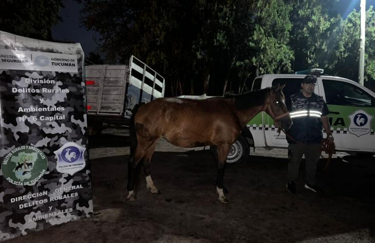En el marco de tareas de prevención realizadas en la noche del jueves, personal de la División Delitos Rurales y Ambientales N° 6 Capital advirtió la presencia de una yegua que se encontraba sin el cuidado de una persona responsable en Villa Mariano Moreno, entre calle 1 y 10.