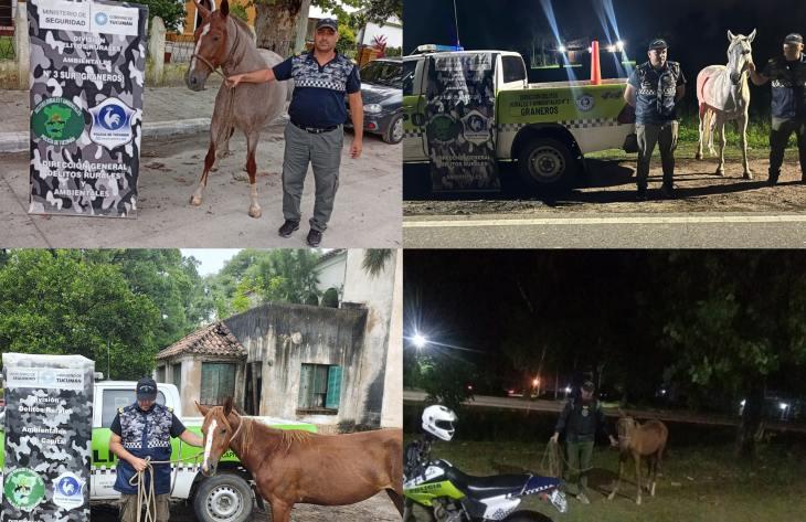Más tarde, efectivos de la División Delitos Rurales y Ambientales N° 3 Graneros retiraron un equino que se encontraba suelto por la ruta Provincial 308 de esa ciudad, poniendo en peligro a los conductores que circulaban la zona.