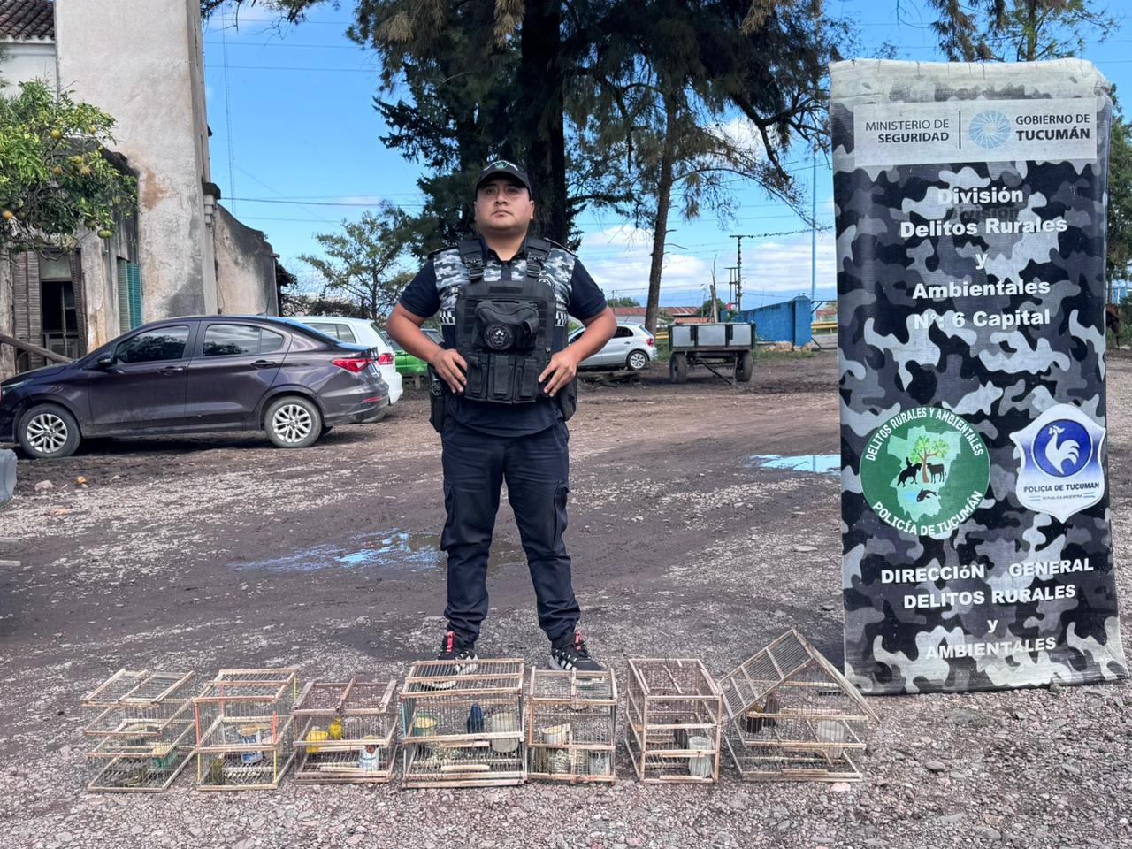 Efectivos de la División Delitos Rurales y Ambientales Capital, concretó dos procedimientos este martes que permitió rescatar 14 aves silvestres e incautar jaulas y tramperas