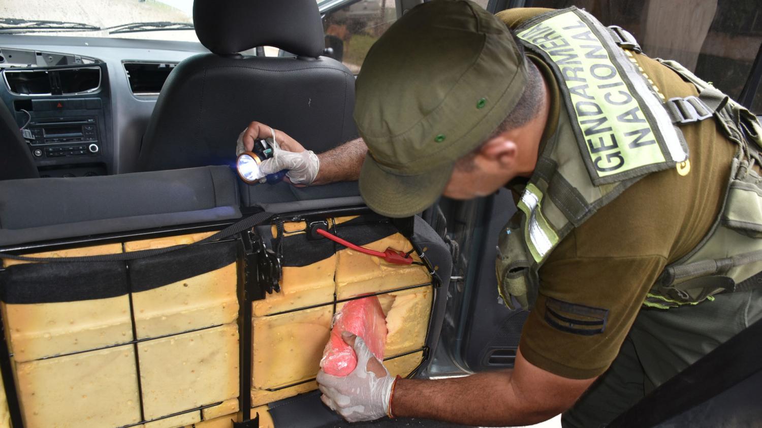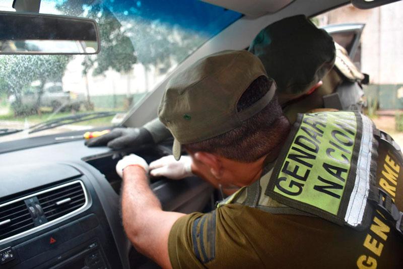 Al momento de la inspección, los gendarmes fueron alertados por el can detector de narcóticos, que marcó la posible presencia de estupefaciente dentro del vehículo. Ante esa situación, los uniformados detectaron, mediante el uso de escáner móvil, la existencia de cuerpos extraños. Inmediatamente realizaron una inspección más minuciosa y comprobaron que había 10 paquetes rectangulares en el ducto de ventilación del aire acondicionado, la rueda de auxilio y el asiento trasero del rodado.