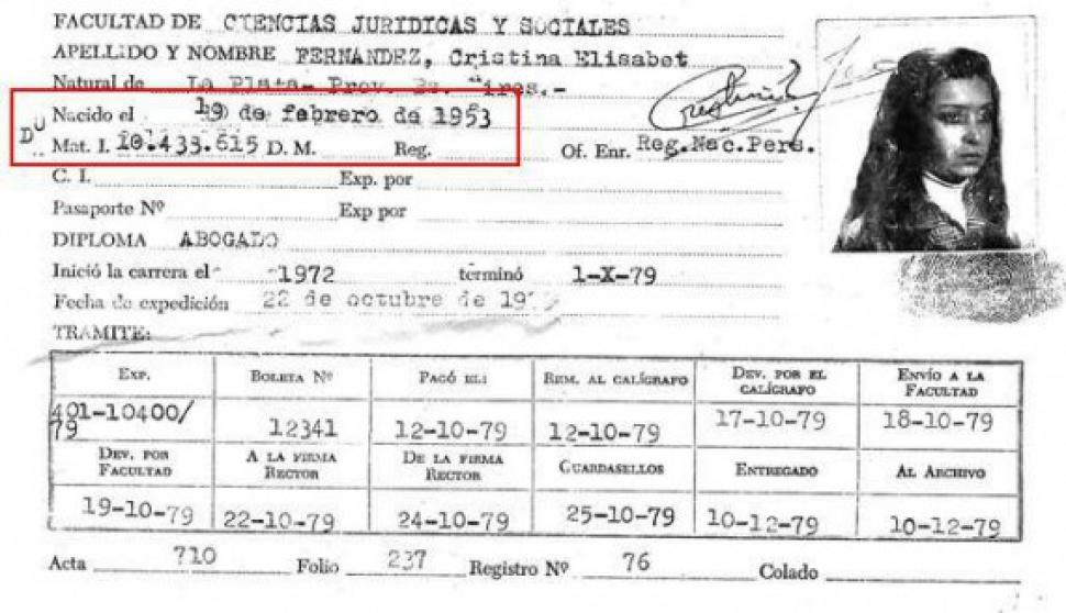-Sí, eso no tiene discusión. A mi entender, Cristina intenta hacer creer que empezó a estudiar antes de cuando realmente comenzó. Ella empezó la universidad en 1974, pero quiere hacer creer que fue el 15 de septiembre de 1972.