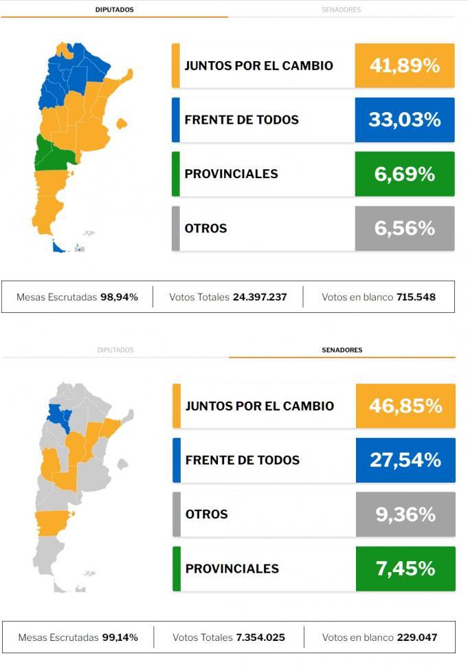 A nivel nacional, Juntos por el Cambio se impuso con el 42,44 de los votos, contra el 32,17 del Frente de Todos