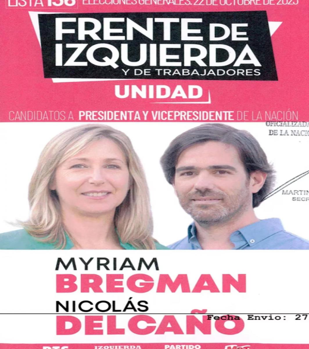 En su fórmula la acompaña Nicolás del Caño, candidato a la vicepresidencia. Entre sus propuestas se incluyen la negativa al pago de la deuda con el Fondo Monetario Internacional (FMI), un “aumento inmediato de salarios y jubilaciones” que equipare la canasta familiar y la nacionalización del comercio exterior.