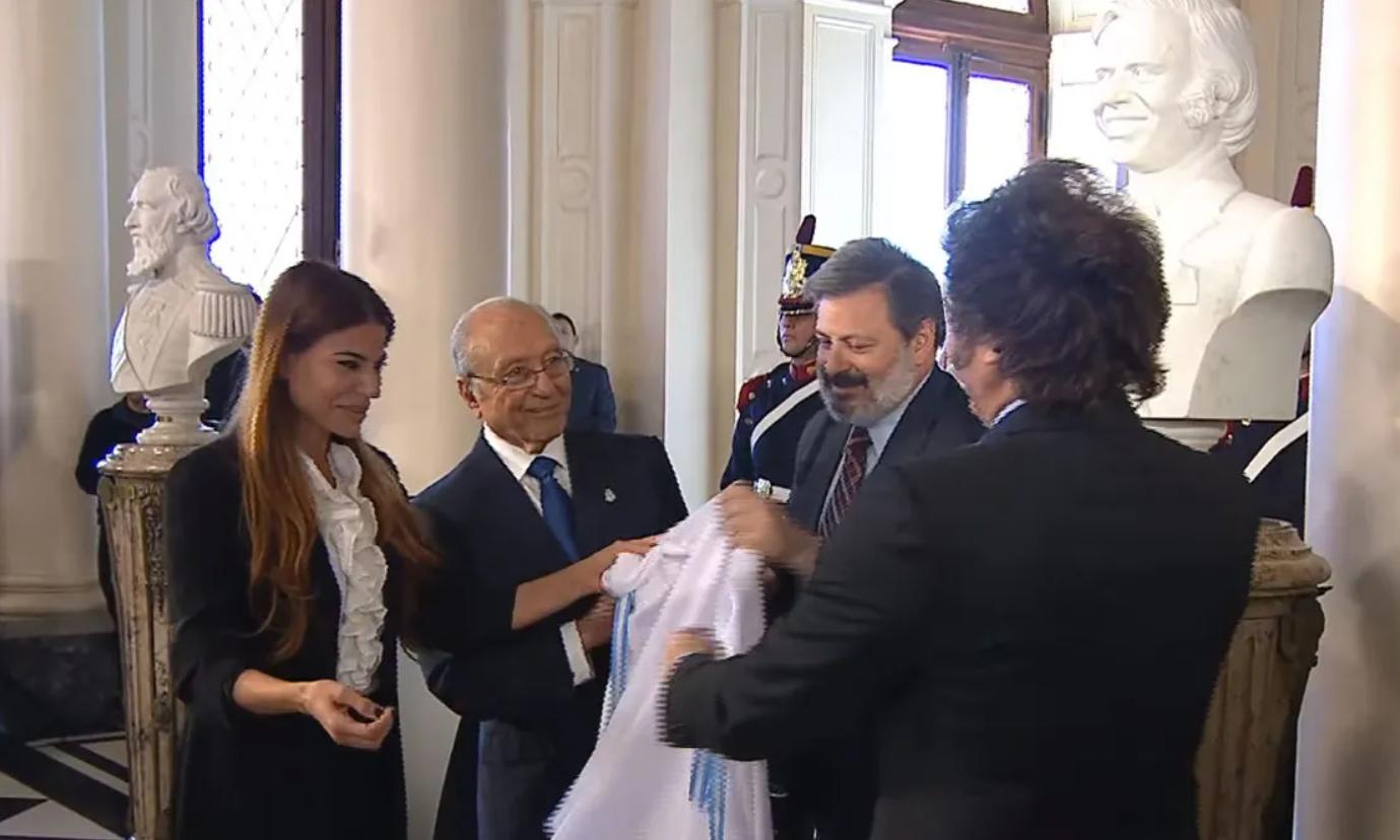 El presidente Javier Milei encabezó este mediodía la inauguración del busto del exmandatario Carlos Saúl Menem en Casa Rosada, con presencia de la familia del riojano