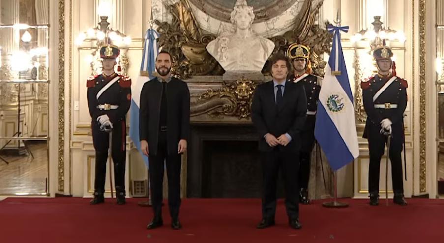 El encuentro oficial entre ambos mandatarios ocurrió minutos después de las 15. El presidente salvadoreño, que llegó al país el pasado jueves, se irá mañana por la noche luego de ver por la tarde a la vicepresidente Victoria Villarruel en el Senado