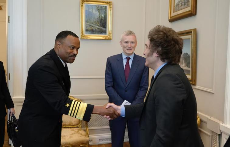 El almirante Alvin Holsey estuvo junto al mandatario libertario algo más de 45 minutos. Antes, participó de una reunión en el Ministerio de Defensa y mañana visitará Usuhaia