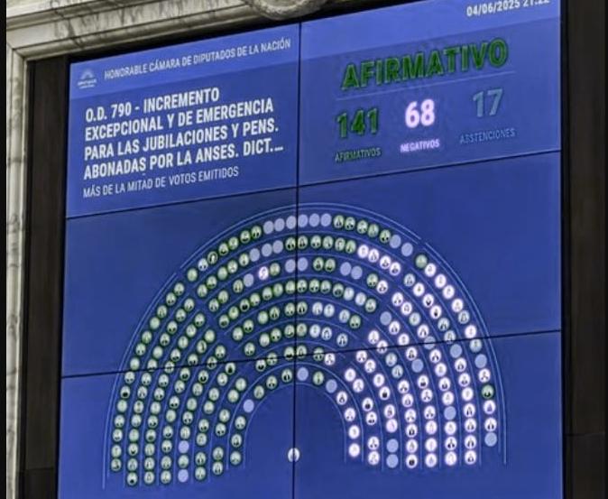 El aumento a las jubilaciones fue aprobado 142 votos contra 67 rechazos y 19 abstenciones (UCR y PRO).