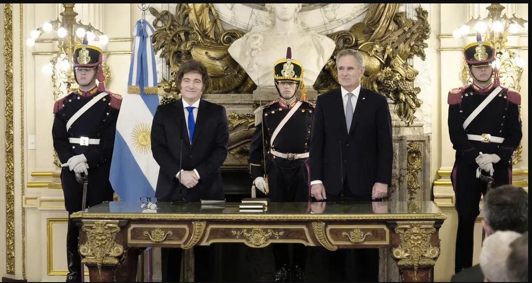 El presidente Javier Milei tomó juramento a Pablo Quirno como nuevo ministro de Relaciones Exteriores, en un acto realizado en el Salón Blanco de la Casa Rosada